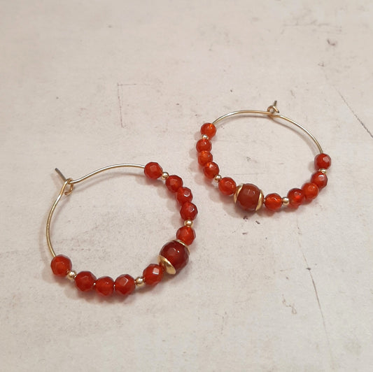Boucles D'Oreilles Créoles en Cornaline et Argent 925 Doré