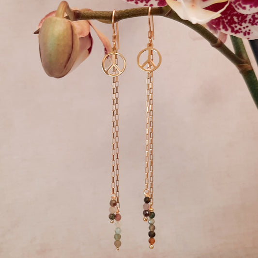 Boucles D'Oreilles Tourmaline et Argent 925 Doré Peace