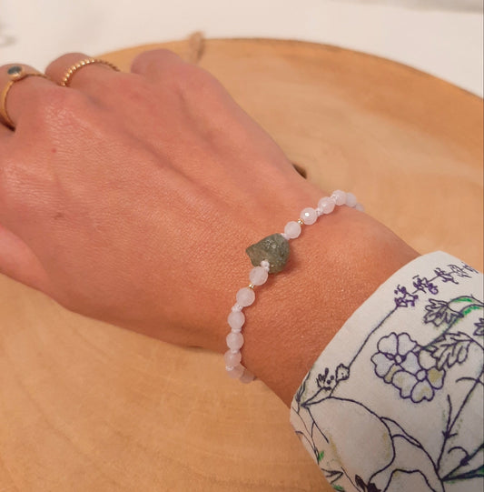Bracelet en Quartz Rose et Grenat Vert Litha