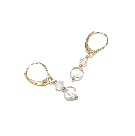 Coffret Boucles d'Oreilles et Bracelet en Argent 925 Doré et Cristal de Roche