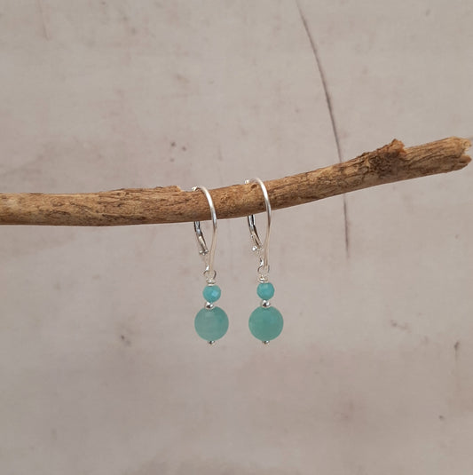 Coffret Boucles d'Oreilles et Bracelet en Argent 925 et Pierres Naturelles Amazonite