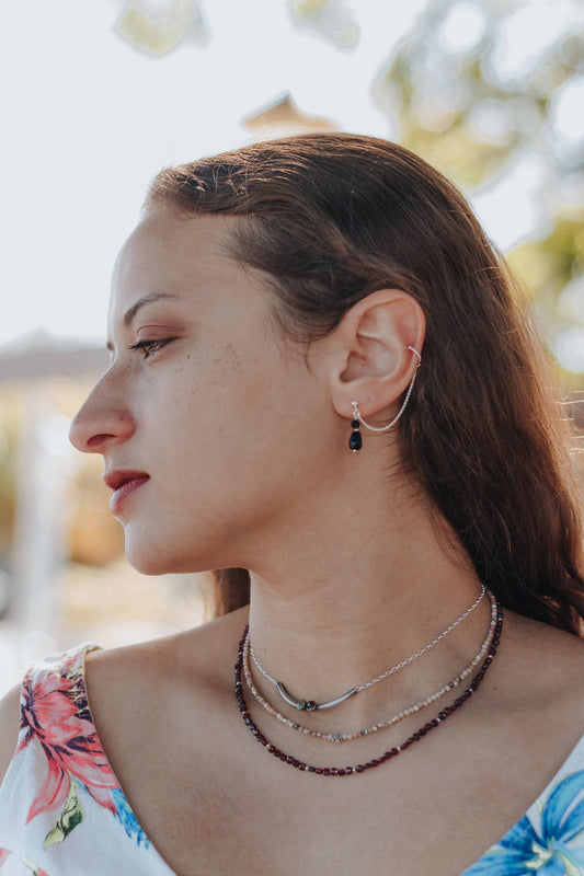 Bijou D'oreille Chaînette en Argent Massif et Onyx