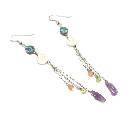 Boucles D'Oreilles Ethniques Coquillages et Pierres Naturelles