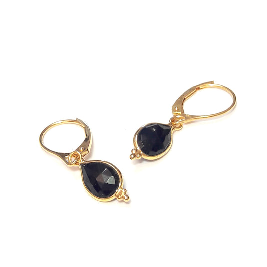 Boucles D'Oreilles en Argent 925 Doré Onyx Gaïa