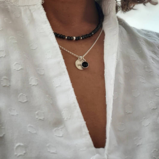 Collier Spinelle Noire, Argent 925 Et Pierres Naturelles
