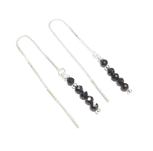 Boucles D'Oreilles en Argent 925 et Spinelle Noire Ilhéus