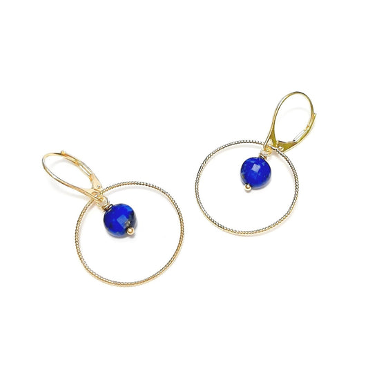 Boucles d'Oreilles en Argent 925 Doré et Lapis-Lazuli Krahô