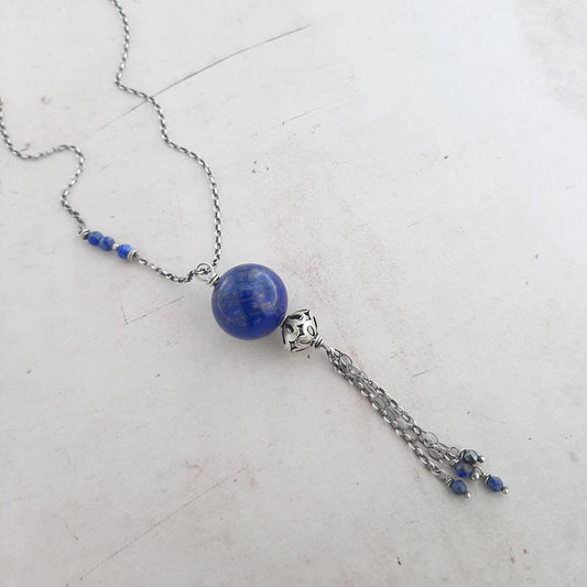 Sautoir Ethnique en Lapis Lazuli et Argent 925