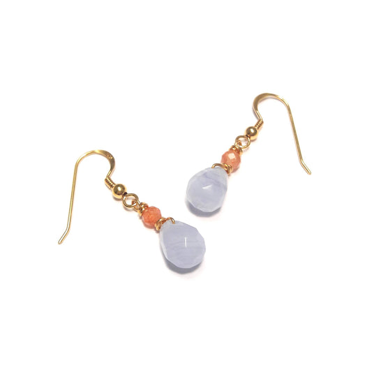 Boucles d'oreilles Calcédoine et Pierre de Lune Argent 925 Doré