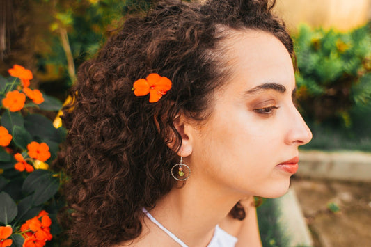 Boucles d'Oreilles Ethniques Pierre de Soleil et Péridot