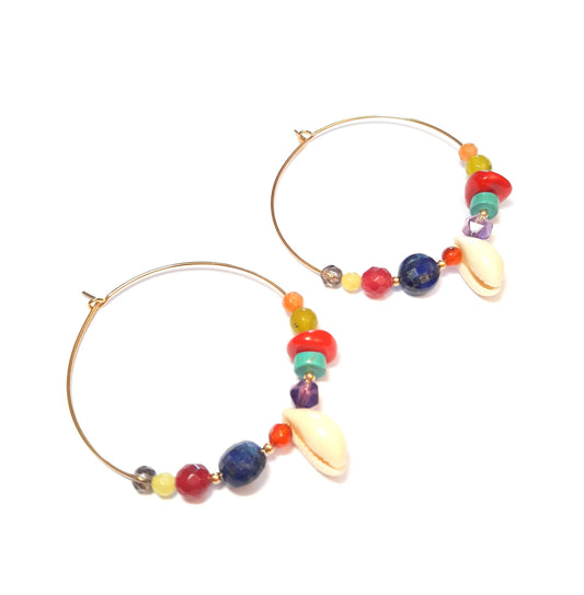 Créoles Cauri en Argent 925 Doré et Pierres Naturelles